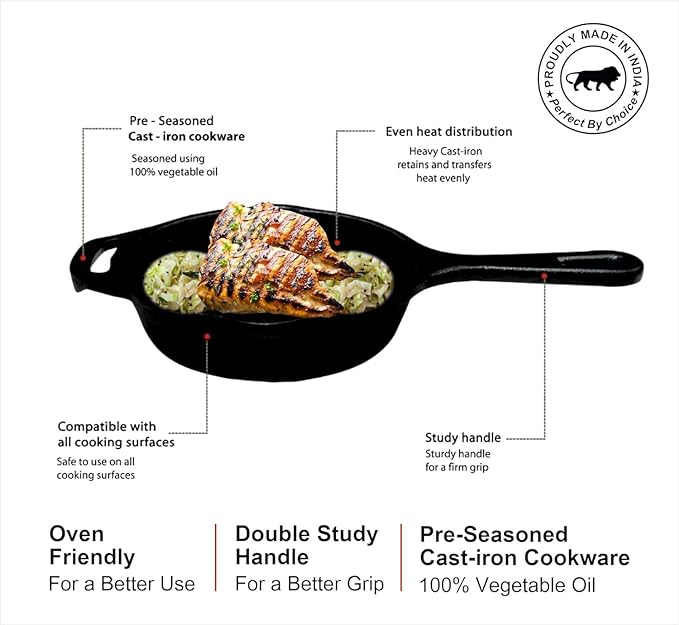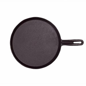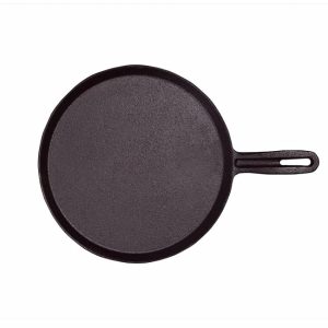 - Cast Iron with two handle. Easily make crispy round buttery dosa and the ever tempting egg omelette.