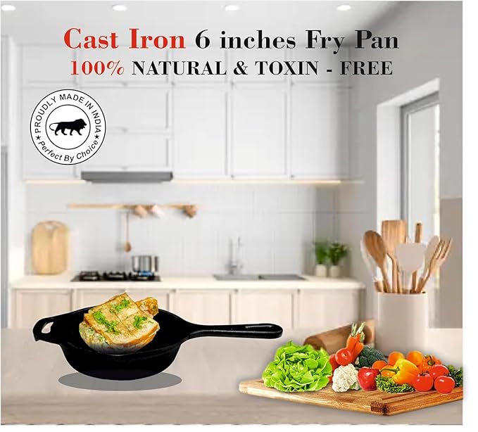 Preet Cookware 6 Inch Cast Iron Fry Pan Skillet Pan Fry, Mini Super Smooth Frying Pan- Black