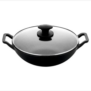 Preet Cookware Cast Iron Kadhai, Kadai for Cooking Deep Fry, Oven Safe Cookware Induction Friendly Loha Kadhai – 3 Litre (26cm), Black with Lid