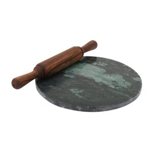 Preet Cookware Indian Green Marble Roti Maker with Solid Sheesham Wooden Belan/Green Marble Chakla 10 Inch Diameter with Belan (Green Marble Chakla with Belan) (Green Chakla with Belan)